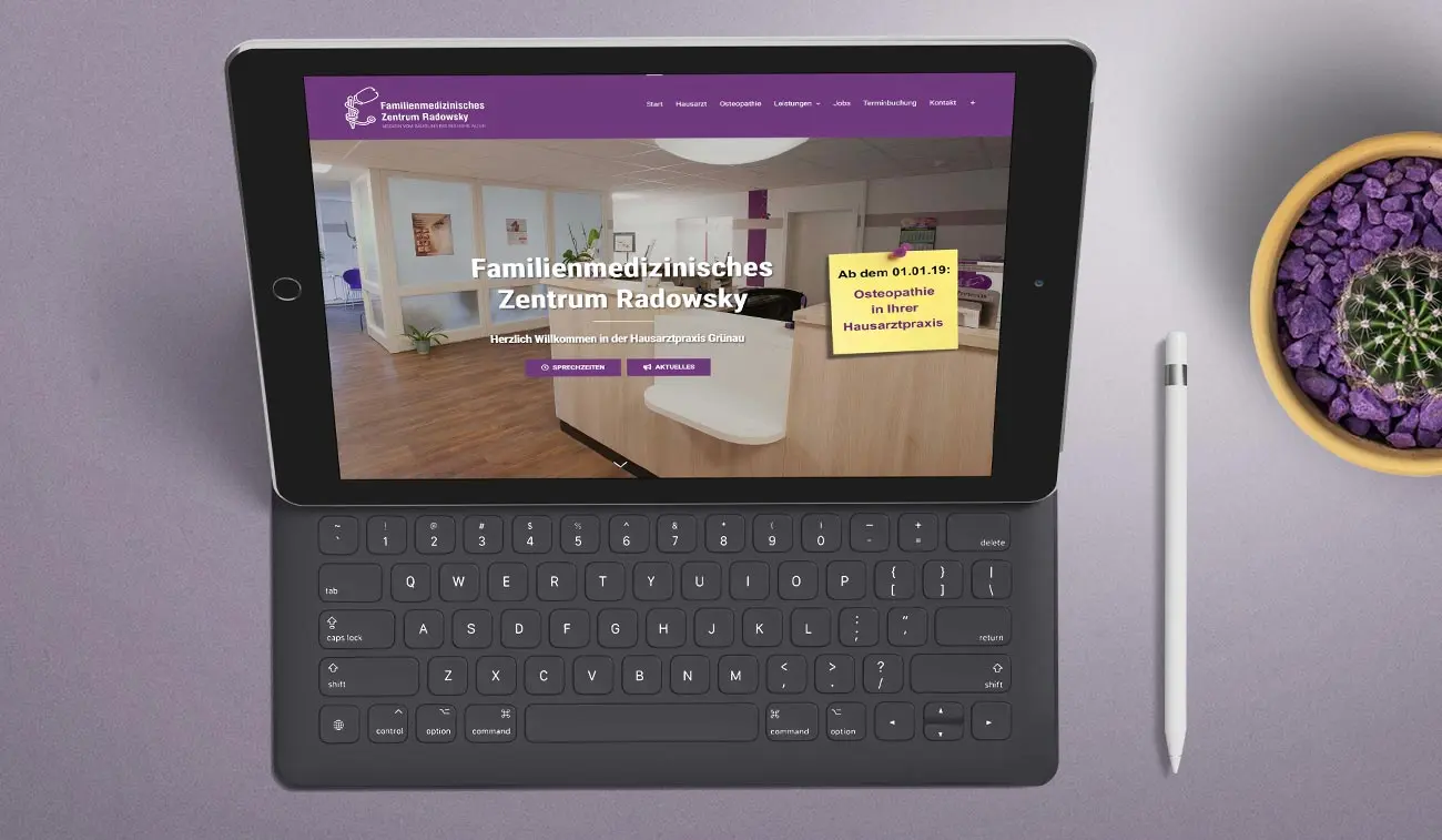 Wenn Arztpraxen zu wenig wahrgenommen werden, ist es wichtig ein Corporate Design einzuführen. Alle erfolgreichen und großen Unternehmen und Organisationen haben es. Für die drei Praxen vom Familienmedizinischen Zentrum Radowsky haben wir das Erscheinungsbild erarbeitet. Nach klaren Vorstellungen des Kunden wurde das Corporate Design als wichtiger Faktor der Patientengewinnung und -bindung umgesetzt. So entstanden zusätzlich verschiedene Drucksachen und Webauftritte für jede einzelne Arztpraxis. Die dominierende Farbe Lila steigert als Markenfarbe den Wiedererkennungswert des Praxisverbundes.