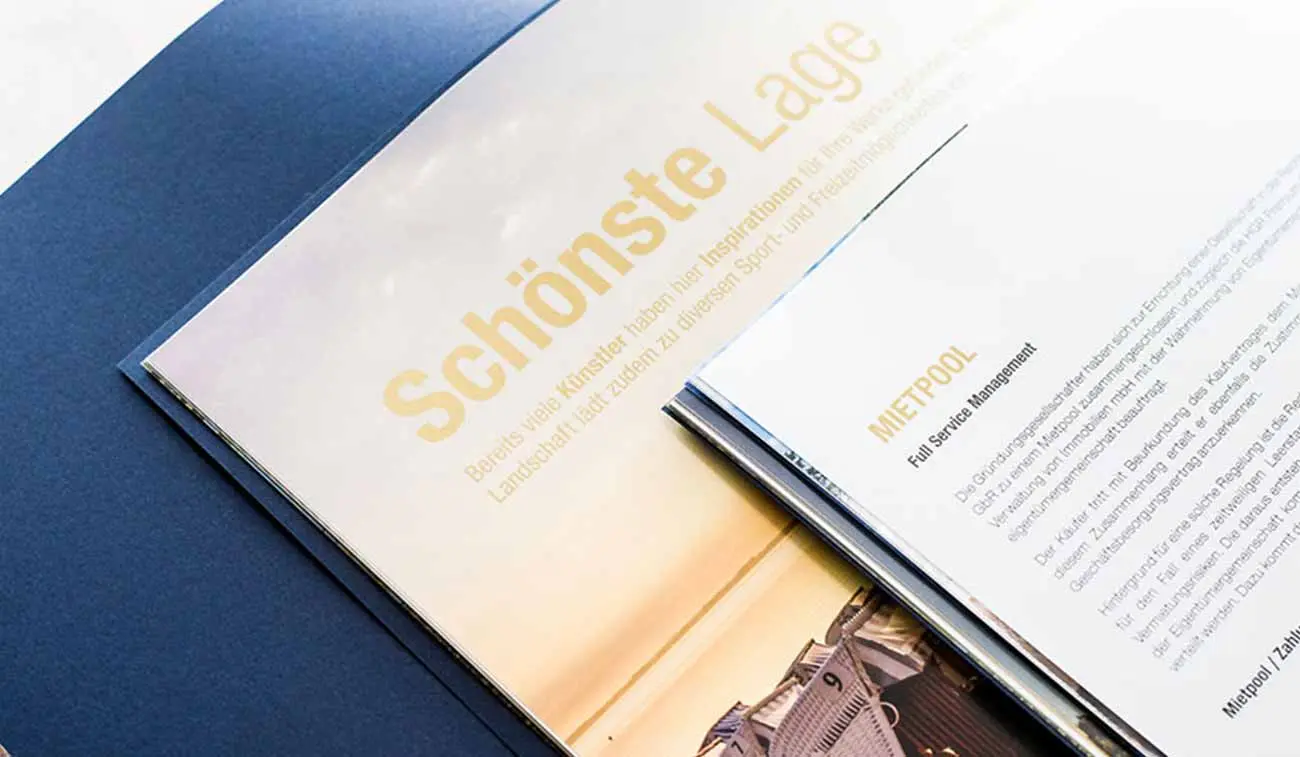 Die COMARTIST Werbeagentur hat eine 22-seitige Imagebroschüre entwickelt, die alle bedeutenden Informationen zur Immobilie berücksichtigt und diese repräsentativ darstellt. Nach Corporate Design Vorgaben und in enger Zusammenarbeit mit dem Auftraggeber entwickelten wir die Broschüre für den Immobilienverkauf.