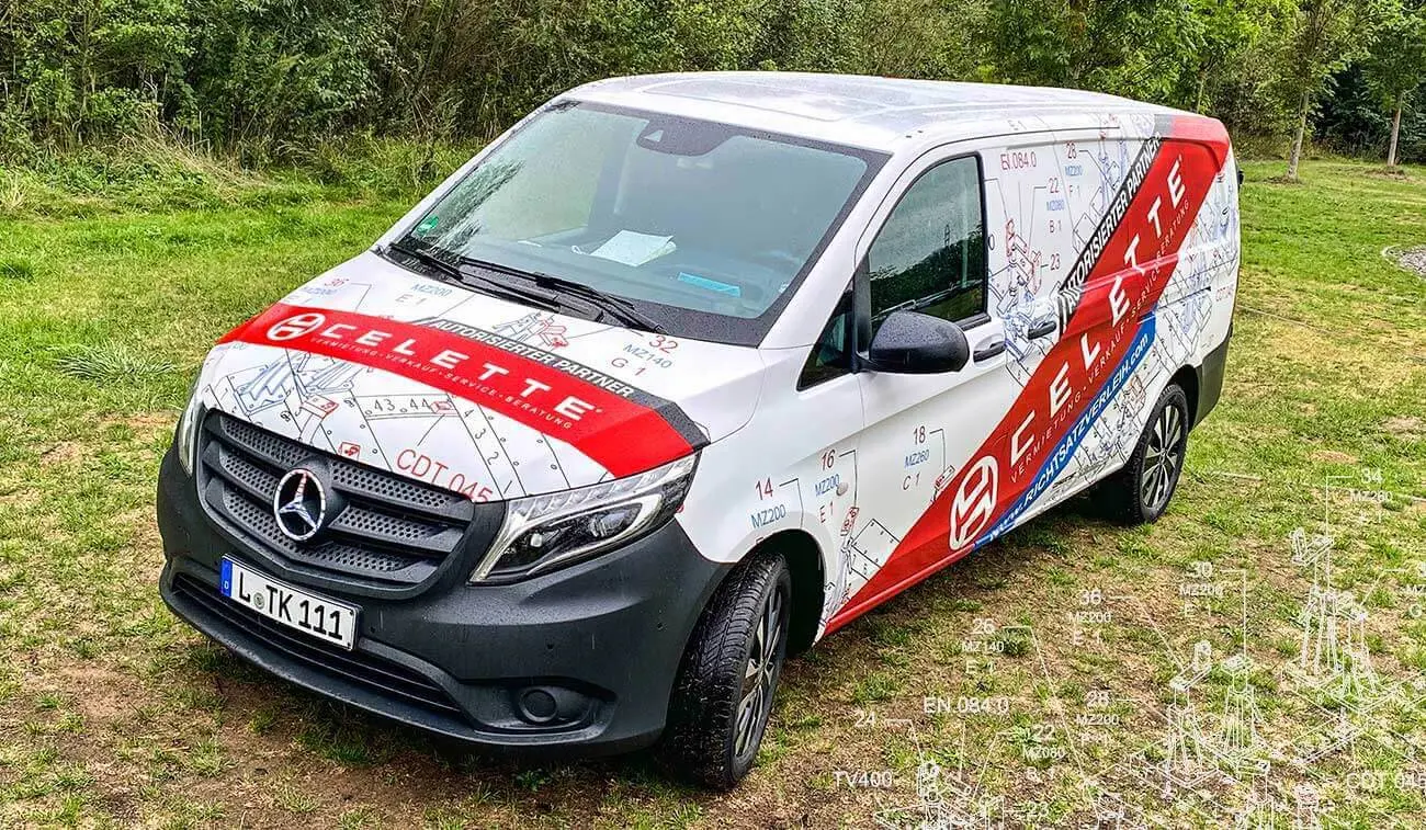 Schwarzer Mercedes Vito im weißen Gewand. Die Tkaczyk GmbH ist CELETTE Partner für die Karosserieinstandsetzung. Der Kunde wünschte die Vollfolierung des schwarzlackierten Fahrzeugs. Individuell ist unser Motto! Deshalb legen wir großen Wert darauf, aus jedem Fahrzeug ein Unikat und absoluten Hingucker zu machen. Durch unsere individuelle Designerstellung waren die Möglichkeiten im Digitaldruck nahezu grenzenlos.