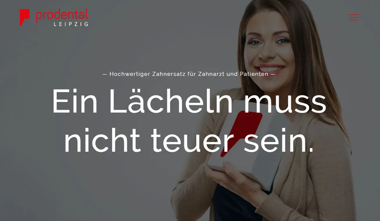 Prodental Leipzig ist mit mehr als 20 Jahren der Dienstleistungspartner für Zahnärzte und Patienten. Das Unternehmen fertigt als Dentallabor günstigen Zahnersatz von überdurchschnittlich guter Qualität. Nach Vorgaben von Zahnarztpraxen werden ästhetische und biokompatible Zahnersatzlösungen als bezahlbare Versorgung hergestellt. Die Zielgruppe besteht vorrangig aus Zahnärzten und deren Arztpraxen.