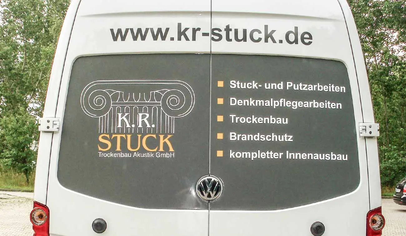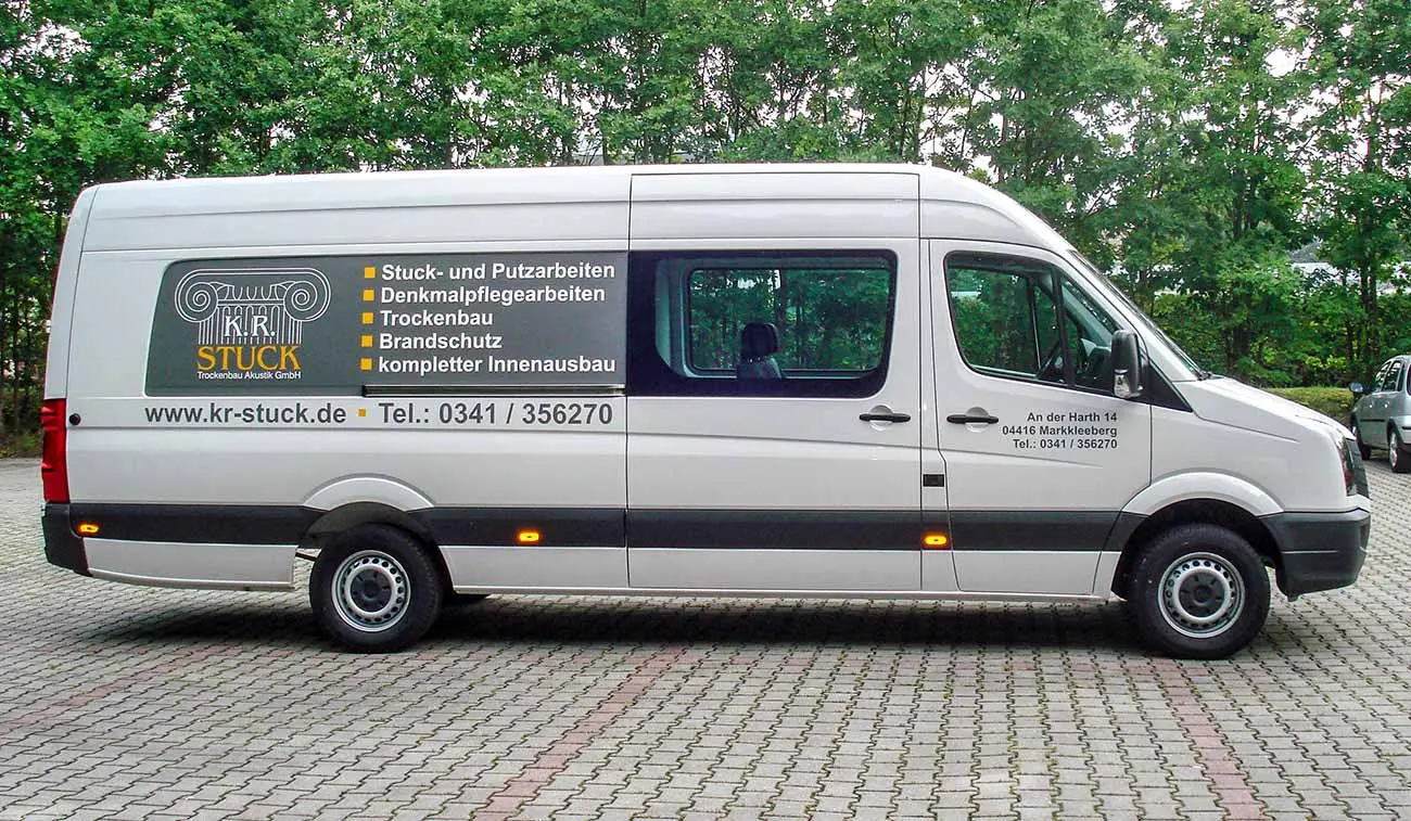 Die meisten Handwerksbetriebe geben jährlich zwischen 1000 und 5000 Euro für Marketing aus. Damit liegen sie gleichauf mit anderen Wirtschaftszweigen. Geht es um werbliche Nähe zum Kunden, investieren Handwerker vorrangig in rollende Fahrzeugwerbung und Onlinemarketing. Im Vergleich zu vielen Mitbewerbern setzt das Stuckateurunternehmen von Roy Kälker auf die Kraft der eigenen Marke. Mit großflächigen Transporterbeschriftungen verzeichnet das Unternehmen messbare Erfolge.