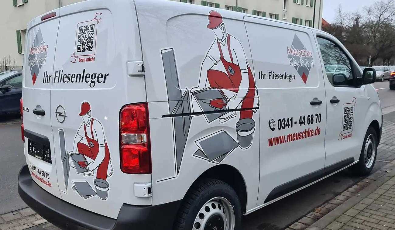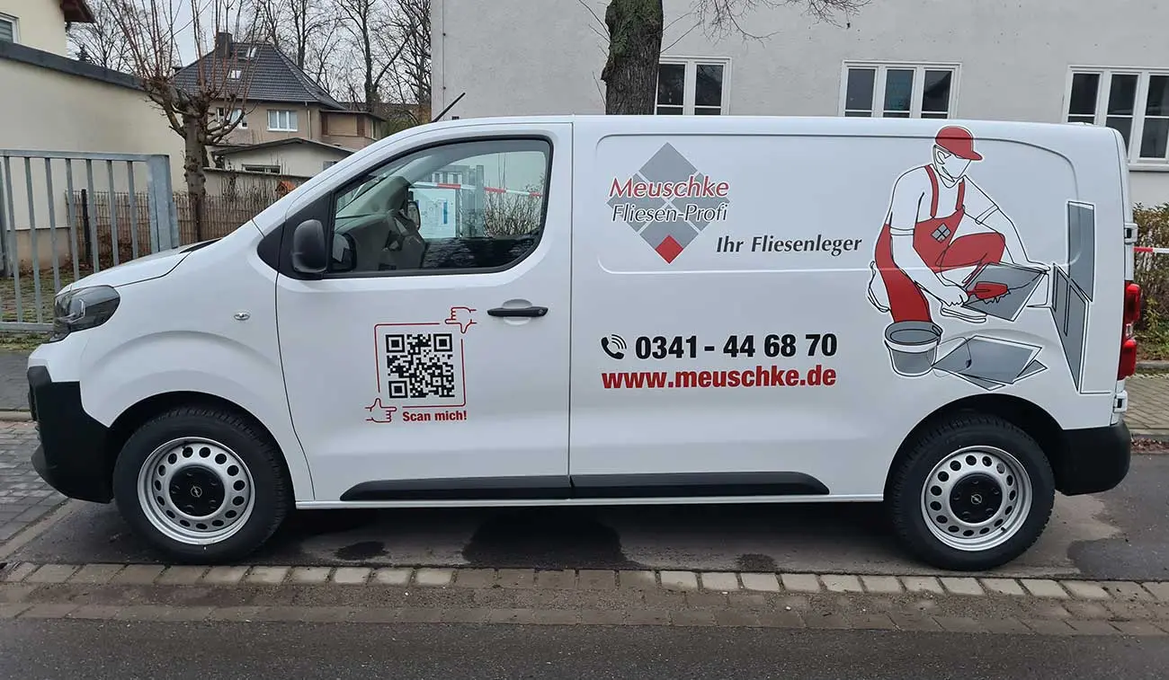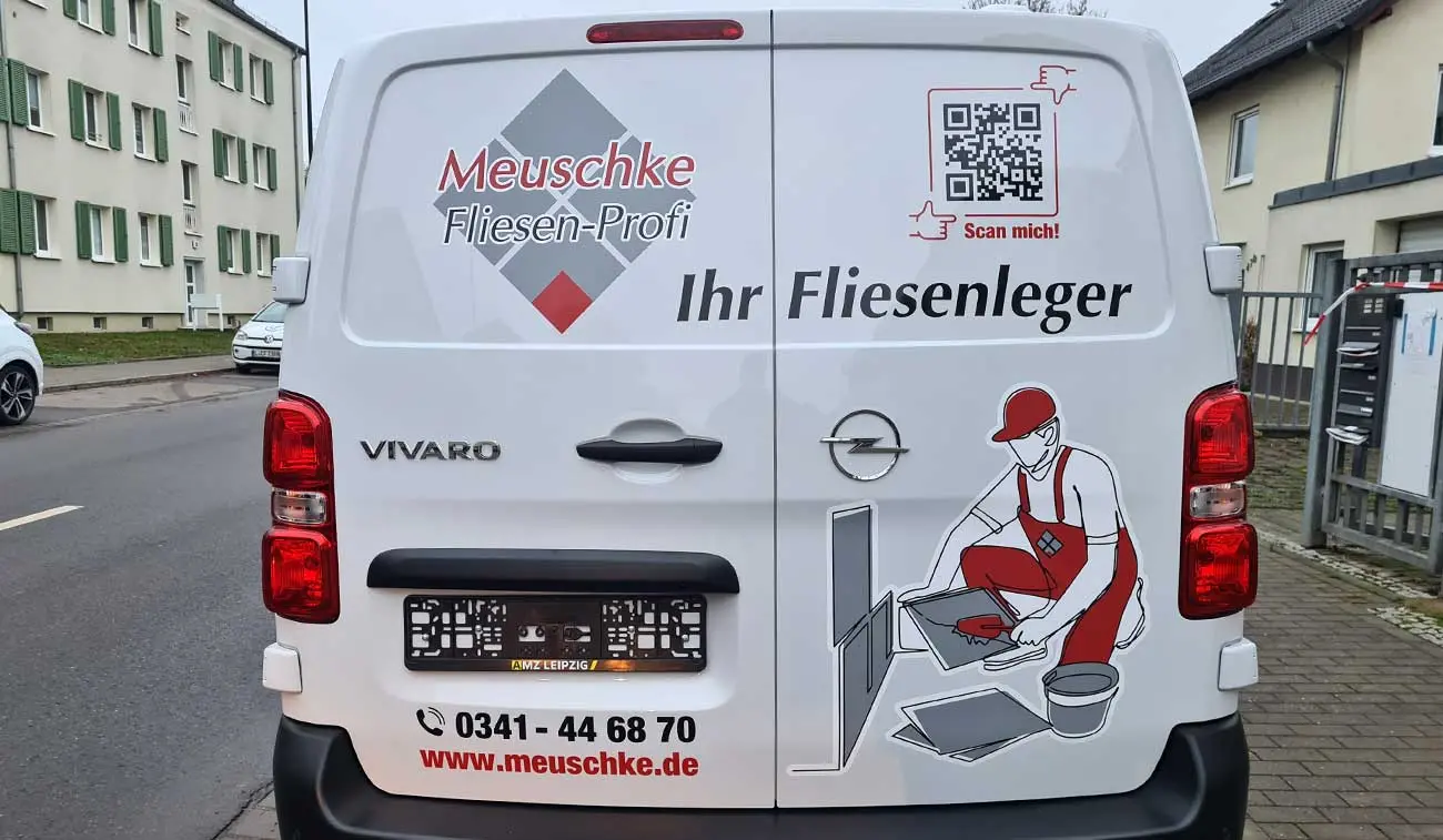 Christian Meuschke Fliesen-Profi e.K. ist kompetenter Partner rund um das Thema Fliesen. Bereits seit 1990 erfüllt der Meisterbetrieb die Wohn(t)räume seiner Kunden. Die Fahrzeugflotte wächst unaufhörlich. Gern unterstützen wir das Unternehmen mit unserer Transporterbeschriftung.